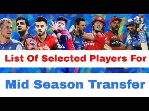 Watch the list of all eligible players Selected and going to be the part of IPL 2018 mid season transfer from all teams. Follow on Instagram- https://ift.tt/2yugjeQ Music comes under CC License - Funky Music (Vlog Music) by DJ Quads https://ift.tt/2wGyi4q Music Provided by Audio Library https://youtu.be/7y1mi7ggtt0 Cool by Tobu https://ift.tt/1ltJrY2 Creative Commons — Attribution 3.0 Unported— CC BY 3.0 https://ift.tt/15faYU2... Music provided by Audio Library https://youtu.be/lbMraHEhdgM
